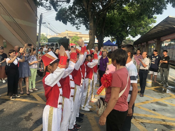 9月12日上午,開發(fā)區(qū)第五小學(xué)鼓號(hào)隊(duì)?wèi)?yīng)社區(qū)邀請(qǐng)參加入伍新兵歡送活動(dòng)。在大隊(duì)總輔導(dǎo)員阮結(jié)連等老師的帶領(lǐng)下,鼓號(hào)隊(duì)的全體隊(duì)員兵分四路,先后參加了海傍、灰爐、馬安、茂生的新兵入伍歡送儀式。