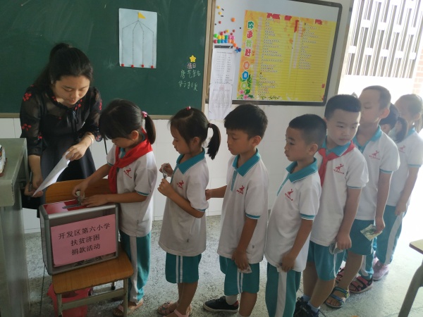 “贈(zèng)人玫瑰,手留余香”,每年的6月30日是廣東省的扶貧濟(jì)困日,為了弘揚(yáng)中華民族傳統(tǒng)美德,積極踐行社會(huì)主義核心價(jià)值觀,開(kāi)發(fā)區(qū)第六小學(xué)響應(yīng)省捐款活動(dòng)的號(hào)召,于6月28日開(kāi)展“學(xué)子獻(xiàn)愛(ài)心”捐獻(xiàn)活動(dòng),號(hào)召全體學(xué)生伸出援手,為弱勢(shì)群體捐款獻(xiàn)愛(ài)心。首先各班班主任在班級(jí)進(jìn)行愛(ài)心教育,講述本次愛(ài)心捐款的意義,動(dòng)員全體學(xué)生積極行動(dòng)起來(lái),為貧困人員獻(xiàn)出自己的愛(ài)心。
