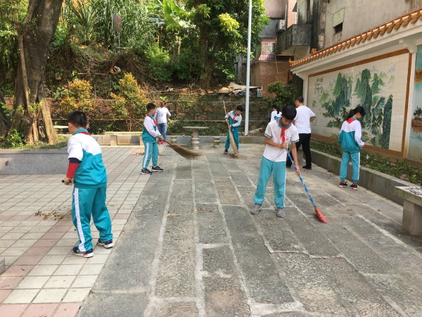 到達沙邊村良德公園后后,負責(zé)本次活動的羅老師安排好勞動范圍。對隊員和家長進行分組,定好負責(zé)組長,并強調(diào)注意事項。接著隊員們?nèi)齻€一群,五個一伙,就開始熱火朝天的干起來。隊員們不怕臟、不怕累,撿起石凳下的白色垃圾和丟在綠化叢中的所料袋;還有的地方有口香糖印,他們采用噴水、用鏟子鏟的方式,讓公園的地面變得干凈起來。在有些地方有些不易發(fā)現(xiàn)的煙頭和枯樹葉,他們也一點一點掃進垃圾鏟。在隊員們的共同努力下,公園地面的紙片、草叢中的垃圾袋都不見了,隊員們看著自己勞動成果,都感到非常欣慰開心。