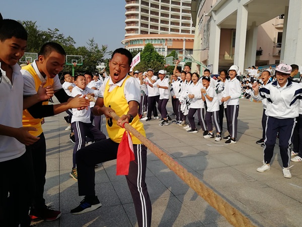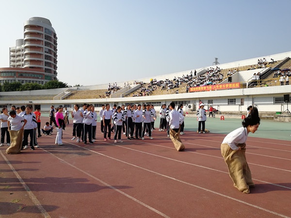 與以往校運會比賽項目設置不同的是,本屆校運會取消個人比賽項目,設立拔河、袋鼠夾球、袋鼠跳、鋪石過河、上籃接力、運球接力、足球定點射門等趣味性集體項目。趣味比賽項目每班派出男、女各10人以上選手,旨在培養學生的團隊意識和集體主義精神。