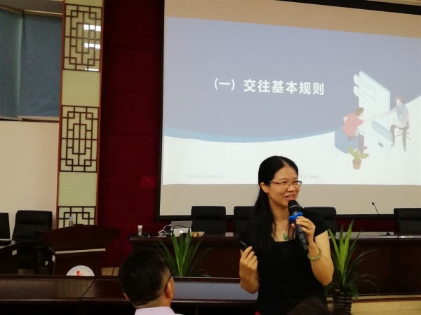 朱敏嫣老師結(jié)合一些具體鮮活案例,插播觸人心靈的小視頻,列舉中小學(xué)教育教學(xué)中存在著容易被老師忽略的愛的負(fù)擔(dān)、愛的傷害種種現(xiàn)象。她結(jié)合《中國中小學(xué)生心理健康發(fā)展報告》的具體數(shù)據(jù),希望老師們掌握溝通漏洞原理,通過把控好交往距離、第一印象效應(yīng)、視線交流邊界的交往基本規(guī)則,熟練運(yùn)用言談禮儀與技巧,善用親和力,夯實(shí)溝通基礎(chǔ),掌握溝通策略,提高溝通效率,促進(jìn)和諧順暢師生關(guān)系的形成。