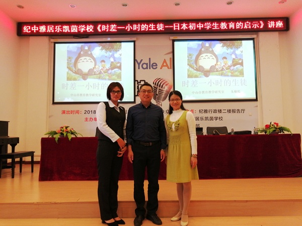 “家校聯(lián)動(dòng)教育教學(xué)模式”是紀(jì)中雅居樂(lè)凱茵學(xué)校的一大教學(xué)特色,繼紀(jì)雅學(xué)校家長(zhǎng)服務(wù)中心成立儀式之后,學(xué)校的家校合作更為密切有效。2018年4月11日下午,由袁祥樊校長(zhǎng)助理和廖偉樂(lè)副主任組織,初一(5)班黃佳薇家長(zhǎng)多方協(xié)調(diào),盛情邀請(qǐng)中山市教育教學(xué)研究室的朱敏嫣老師為我們上了的一堂不同尋常的班會(huì)課。初一年級(jí)的六百余名同學(xué)、袁祥樊校長(zhǎng)助理、廖偉樂(lè)副主任和初一年級(jí)12名班班主任,齊聚報(bào)告廳,聆聽(tīng)了朱敏嫣老師主講的一場(chǎng)名為《時(shí)差一小時(shí)的生徒——日本初中學(xué)生教育的啟示》的講座。