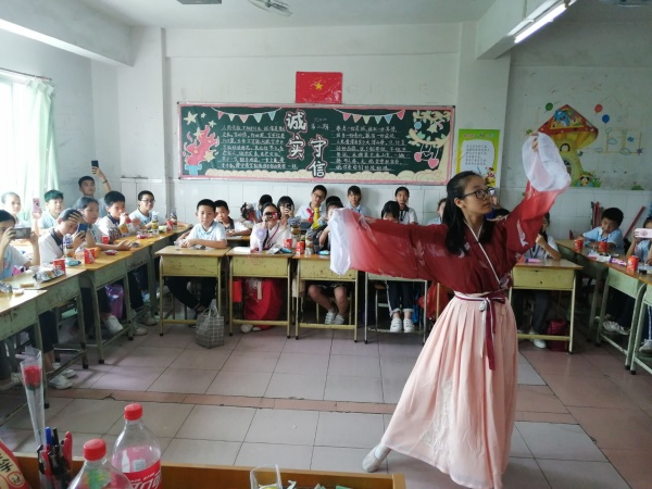 活動中,各班學生早早將教室桌椅擺放好,分小組坐好,并拿出自己精心準備的各種美食,與老師,同學們分享。同學們一邊品嘗著美食一邊觀看表演。有的班級以傳統活動為主,如:猜謎語、搶板凳、撕名牌等游戲穿插到節目中,教室里充滿了學生的歡歌笑語。有的班級以“歌唱祖國、獻詩給祖國”為主題,展示著各自的才藝,有合唱,詩朗誦、舞蹈等節目,臉上洋溢著幸福的微笑。有的班級活動內容形式多樣,如:擊鼓傳花、歌曲串燒、氣球運輸等節目。表達著心中的喜悅之情。同學們通過不同的節目形式,展現了當代少年兒童熱愛祖國,朝氣蓬勃、昂揚向上的精神風貌。