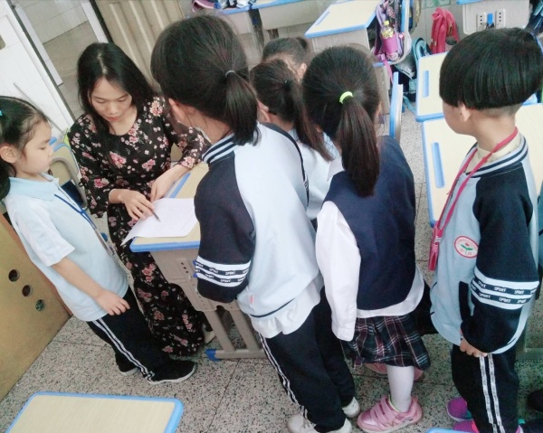 取得理想成績的孩子笑逐顏開,排隊等待的孩子翹首期盼,正在進行中的孩子們自信從容。他們一個個熟練地拼讀著,一張張可愛的小臉漾起燦如春花般自信的笑容。聽著孩子們清脆熟練的聲音,看著他們認真仔細的模樣,老師們滿意地笑了。