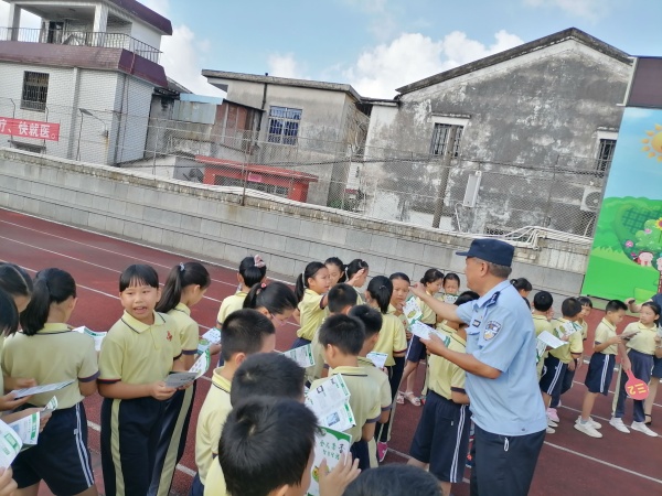 劉警官現場向學生分發宣傳單張,讓學生自己學習,并發揮小手拉大手的力量,向家長普及防詐騙、禁毒的知識,提高防詐騙、禁毒的意識。