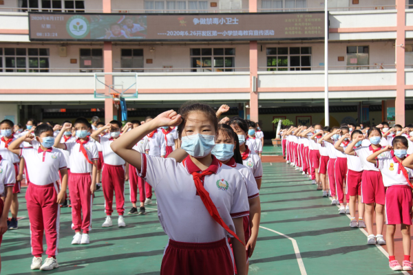 活動最后,開發區第一小學的全體學生在黃玲輔導員的帶領下進行了莊嚴的禁毒宣誓,用堅定的宣誓表達了珍愛生命、抵制毒品、參與禁毒的決心。本次活動不僅提高了學生識毒、防毒、拒毒的認識,而且增強了青少年珍愛生命、遠離毒品的自我保護意識;也使開發區第一小學的禁毒教育真正做到從學生教育入手,將禁毒宣傳教育真正落到實處!