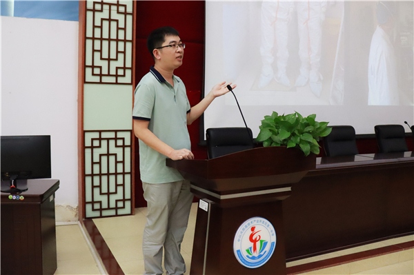他們結合圖片和短視頻,還原了那段不太久遠的記憶,再現了沖鋒在前的“逆行者”及披星戴月的“守護者”的動人身影,讓全場師生為之肅然起敬。學生代表向他們贈送了抗疫作品。