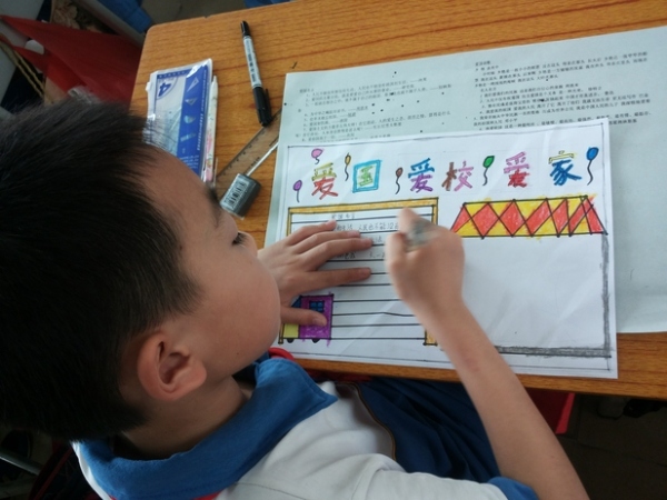 各中隊在中隊輔導員的主持下,利用隊活課時間開展愛國主義活動。各中隊輔導員首先向學生詳細闡述了社會主義核心價值觀的主要內容及深刻涵義,教育學生在成才的過程中,要養成良好的道德行為規范,既要做中華傳統美德的傳承者,也要做社會主義核心價值觀的踐行者,從小做積極向上的好學生、好孩子,長大后成為有擔當、有責任感的好公民。接著,各中隊根據德育處下發的活動安排,組織學生開展了相應的活動。低年級組學生運用各色的畫筆描繪出爭做積極向上的好學生的愿望;中年級組采取手抄報形式希望自己長大后成為有擔當、有責任感的好公民;高年級組利用濃郁的筆墨書寫出要做中華傳統美德的傳承者。學生們積極完成自己的作品,暢談自己對社會主義核心價值觀的認識,表示要從平時的一點一滴做起,用實際行動來踐行社會主義核心價值觀,并在6月29日上交作品,德育處根據學生作品進行評獎。