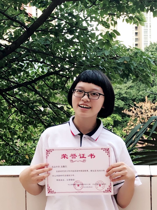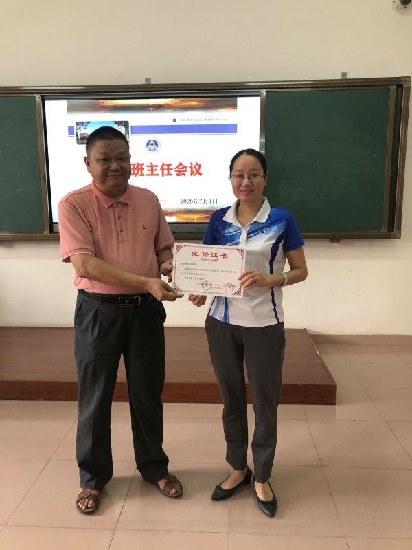 最后,吳美霞老師替張馨月同學接受胡校長頒發(fā)的市自強好少年和自強少年標兵獎項。