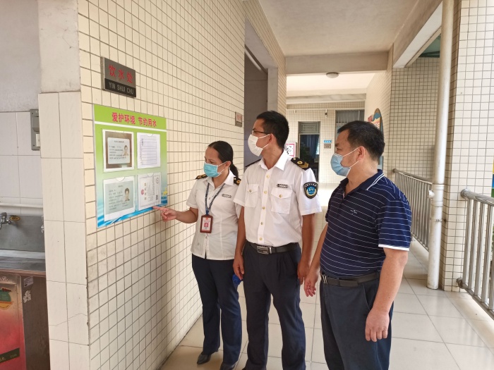9月2日上午,民眾鎮衛生監督所來到浪網小學進行開學防疫工作的驗收檢查,浪網小學劉偉勝校長攜全體行政迎接本次檢查。檢查組從實地查看、查閱資料和現場反饋等三個環節進行檢查。檢查組首先查看了綜合樓直飲機情況,肯定了衛生情況和水質,并查看衛生許可證。接著,他們查看健康觀察區和留觀室、生保健室,檢查組詢問校醫消毒方法、應急預案等,并查看了各種制度,檢查了防疫物資齊備。最后,檢查組在教師會議室,查看了學校各項方案和制度,肯定了該校充分的準備。