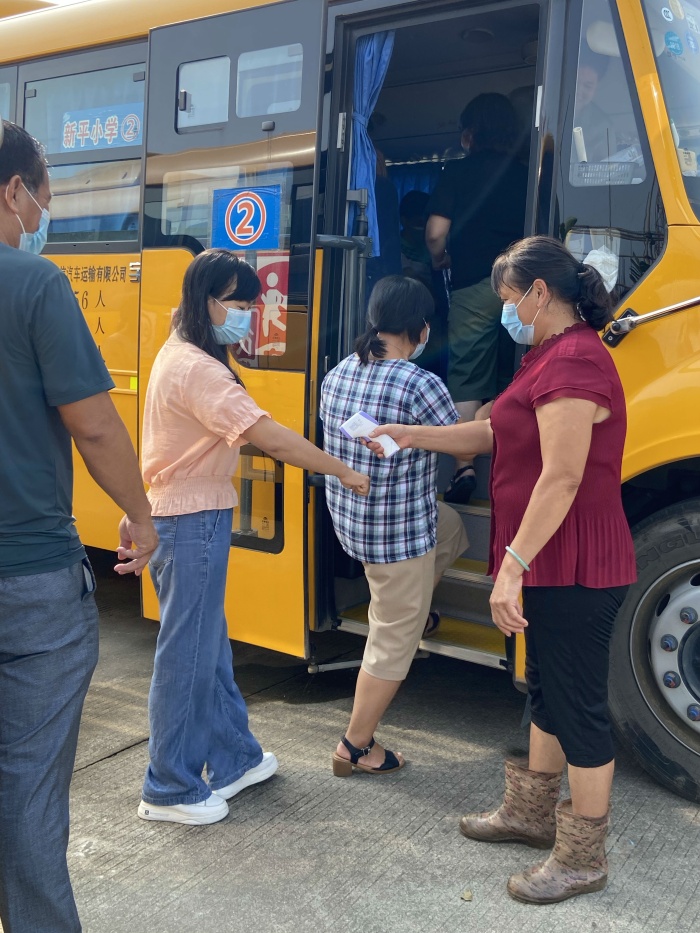 演練堅持“演練即是實戰”的要求,落實落細各項措施。陸銳勛校長為本次演練的總指揮。本次演練分為4個流程。;流程一:校車上學、放學應急演練。24個班主任扮演學生,分2路縱隊依次排隊測溫上下車。流程二:監測體溫,學生排成2路縱隊,梁曉靜、吳宇恒負責測量學生體溫,體溫正常方可入校。學生間隔1米排隊依次接受檢測;體溫正常者直接回教室,不要停留。假如發現有學生出現發燒癥狀(體溫37.3℃)值日行政馬上請她到臨時觀察室休息,通知該班主任打電話叫家長把孩子送到民眾醫院發燒門診部就診。流程三:午休測溫和上課出現異常應急演練;在上課期間發現學生提出身體不適,經簡單詢問和測量體溫,如有發燒立刻打電話給班主任,帶學生離開課室,到臨時觀察室處置。對全班學生逐一進行體溫檢測,確認均無異常后,由上課老師帶領學生由疏散專用通道離開,到備用課室上課。梁兆元主任通知消毒員室外拉起警戒線,并對課室周邊及專用通道進行消毒處理。