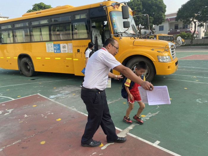 為了讓全體乘車學(xué)生,尤其是一年級學(xué)生及插班生能準(zhǔn)確的找到自己所乘坐的校車,平安回家,下午第二節(jié)課學(xué)校政教處組織乘車學(xué)生進(jìn)行乘車演練。全體行管帶領(lǐng)班主任以及配班老師將學(xué)生送至學(xué)生所乘坐的車輛前,與跟車?yán)蠋熯M(jìn)行對接。跟車?yán)蠋熞灰缓藢W(xué)生???,確保學(xué)生不上錯車。