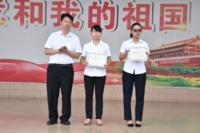 “起來!不愿做奴隸的人們——”全校近3000名師生齊唱國歌,五星紅旗冉冉升起,慶祝教師節暨表彰大會在莊嚴的升旗儀式中拉開了序幕。學生代表雷薈美同學激情演講,表示在新的學年將會勤奮刻苦,努力拼搏,不辜負家長、老師們的殷切期望,并深情表達了對老師的感恩,對同學的激勵以及對全體老師的節日祝福。辦公室吳良成主任宣讀表彰決定,對在2019學年度教育教學中成績優異的優秀少先隊輔導員、優秀班主任、優秀教師、優秀教育工作者共35位老師進行了表彰,學校黃元感校長及主要行政領導為獲獎教師進行了頒獎,感謝他們在過去一個學年的傾情付出,成就學校榮光。