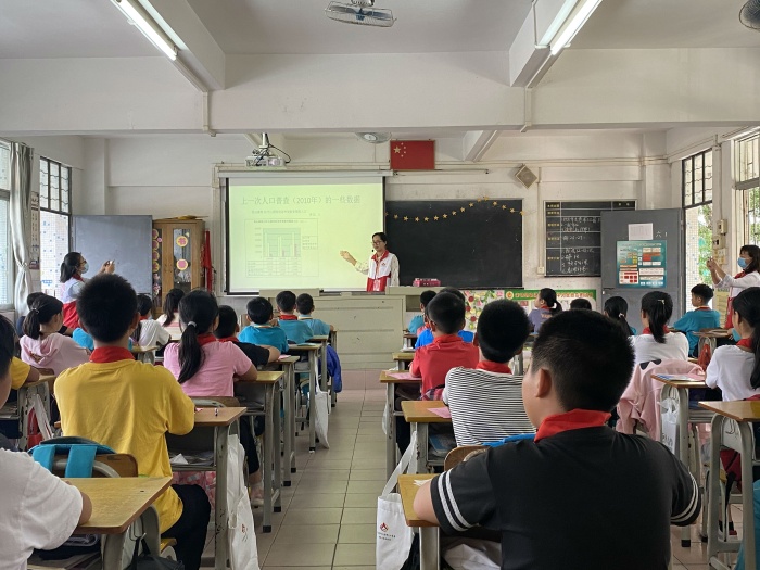 講座中,主講賴老師先讓同學們觀看了關于“全國人口普查宣傳視頻”,談談自己的一些看法。接著,賴老師又聲情并茂地向同學們講解人口普查小知識,工作人員向同學們派發《致住戶的一封信》和《人普宣傳小冊子》,并親身示范展示普查員入戶時的標準著裝及流程。為了檢驗孩子們是否掌握好相關知識,開啟了有獎問答環節,同學們紛紛舉手搶答,回答問題又快又準。最后,老師鼓勵同學們積極自覺地行動起來,從自身做起,積極宣傳,讓大家生活的地球變得更加美麗和諧。