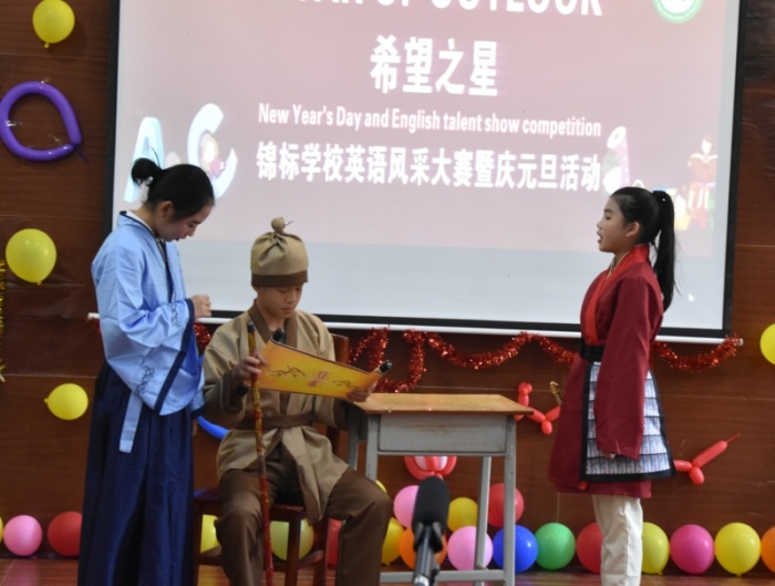為了進(jìn)一步豐富校園文化生活,營造積極向上的英語氛圍,本著與課程相結(jié)合,“人人參與,個個展示”的原則,讓學(xué)生在形式多樣、內(nèi)容豐富的英語活動中感受學(xué)英語的快樂,享受學(xué)英語的樂趣,12月30日,錦標(biāo)學(xué)校英語科組開展了“希望之星”英語風(fēng)采大賽暨慶祝元旦活動。