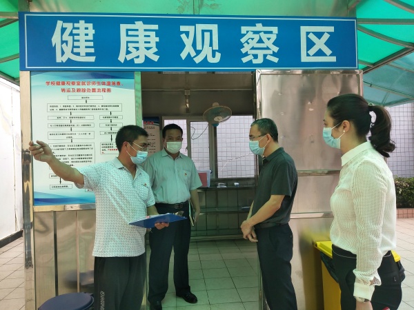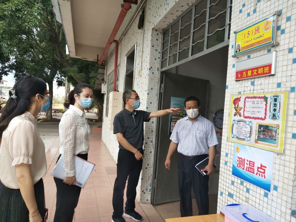 5月9日上午,民眾鎮黨委副書記、鎮長黃聲群、黨委委員劉釗妍、衛健局、市場監管局、社區衛生服務中心、疾控中心及教育事務指導中心黃海文主任、田萊莉副主任等組成學生返校疫情防控專班來到民眾中心小學,對學生返校疫情防控準備工作進行驗收。在民眾中心小學全體行政陪同下,黃聲群鎮長一行分成兩組,分別對民眾中心小學的疫情防控工作進行了實地考察和防疫準備工作資料查閱,了解學校各項防疫工作是否按照中山市學生返校專班62項要求落實學生返校復學準備工作。之后,專班成員針對各項要求對本次驗收工作進行反饋,并提出相關的整改建議,要求學校盡快落實整改,并做好相關的資料上報。