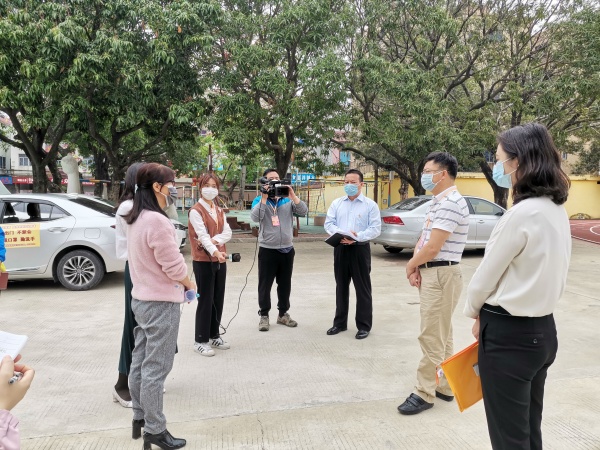 首先,民眾中心小學馬耀強校長向李書記匯報了該校疫情防控工作情況,包括重點疫區學生排查,教師市外省外出行的排查情況。
