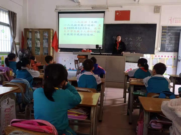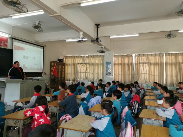 當天早上,大隊委黃藹崢國旗下講話向全體同學講述了“一二·九”運動的由來和偉大的歷史意義,讓全體同學都感到只有祖國的強大,才有我們今天的幸福生活。她還呼吁:作為新時代的少年,要銘記歷史的教訓,努力學習,奮發圖強,用智慧和雙手把祖國建設得更加繁榮富強。