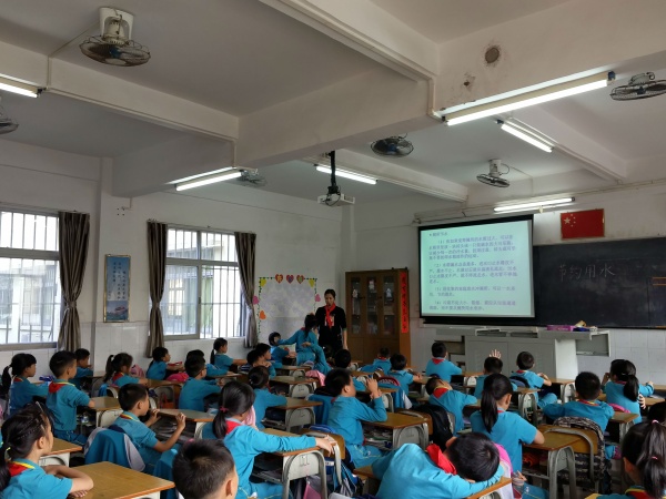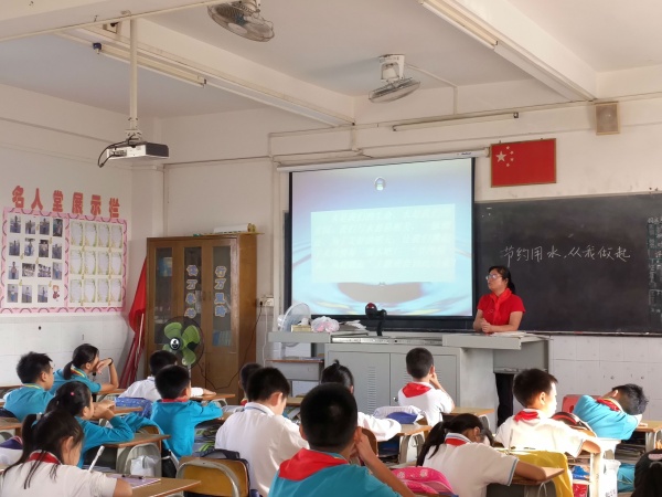 11月29日,民眾中心小學的向英老師以《節約用水,從我做起》為主題作國旗下講話。分析當前全球水危機的現狀,改變孩子把水看成取之不盡、用之不完的觀念,教會孩子一些節約用水的方法。接著,各班主任利用班會課進一步了解和學習節約用水的有效辦法。借用PPT出示有關旱災的地區,引導孩子進一步了解全球水危機的現狀,從而引導孩子節約用水,保護水資源,掌握一些節約用水的技巧。例如:看到有人浪費用水,主動上前勸說;見到水龍頭在滴水,應該隨手關上。又如:做好水資源的再次利用,收集自己的洗臉水、洗衣服水來沖廁所;用淘米水洗菜,然后再用洗菜水澆花等,讓節約用水得好習慣到處開花,成為一道優美的風景線。
