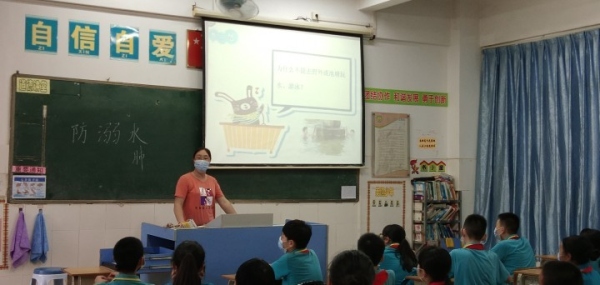 4-6年級的學生在班主任的組織下,學習了“救起溺水者后的急救”。通過學習,學生知道了救起溺水者后應采取的急救措施;了解、學習到了心肺復蘇的步驟,并能基本掌握心肺復蘇術;了解到了對溺水者進行急救的重要性。