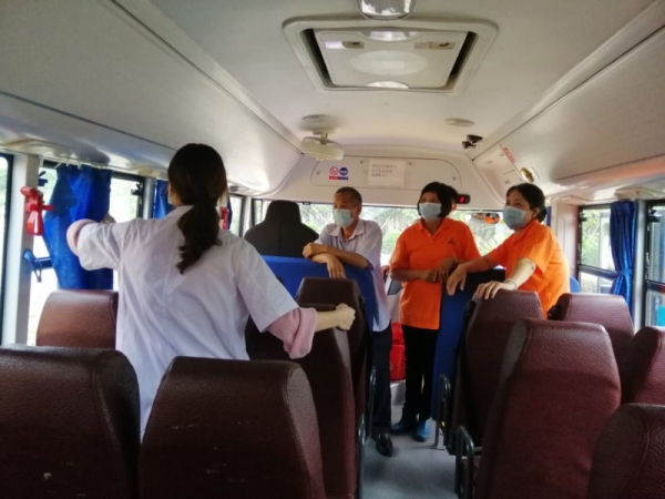 然后,伍醫師講解了校車的消毒。她重點講了兩點。校車應注意開窗通風,車內表面參考物體表面的消毒;車內空調濾網每周清潔消毒一次,濾網可浸泡含氯消毒液消毒。