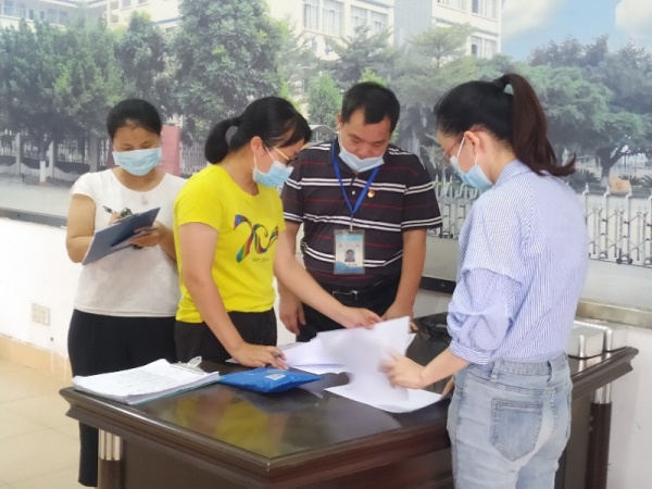 為切實做好開學疫情防控工作,保障全體師生的身體健康和生命安全,2020年5月9日下午,民眾鎮教育事務指導中心主任黃海文、干事李軍榮、食品藥品監督所所長藍竑、民眾社區衛生服務中心主任譚麗華、民眾疾控中心周敏華、陳瑩瑩等一行人來到浪網小學,對2020年春季四五六年級開學返校準備工作及疫情防控工作進行檢查,該校校長劉偉勝與全體行政全程陪同。
