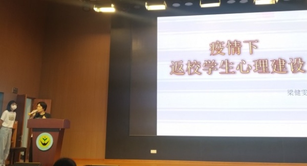 該校心理老師梁健雯老師為全體教師作題為《疫情下返校學生心理建設》的專題培訓。