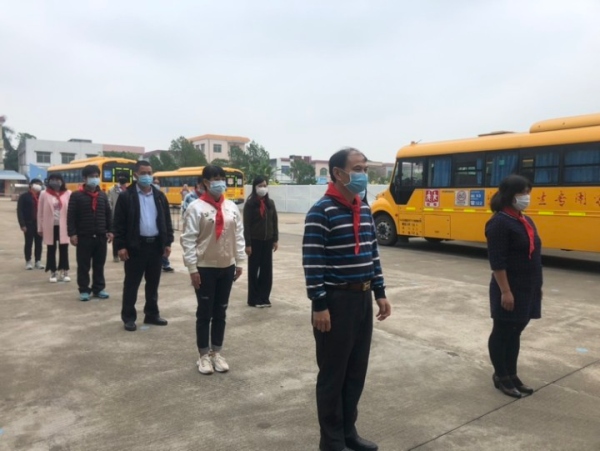 演練堅持“演練即是實戰”的要求,落實落細各項措施。陸銳勛校長為本次演練的總指揮。本次演練分為7個場景。場景一:排隊進入校門。24個班主任扮演學生,分2路縱隊從刷卡口進入。場景二:監測體溫,學生排成2路縱隊,馮培有、吳宇恒、負責測量學生體溫,體溫正常方可入校。學生間隔1米排隊依次接受檢測;體溫正常者直接回教室,不要停留。假如發現有學生出現發燒癥狀(體溫37.3℃)值日行政馬上請她到臨時觀察室休息,通知該班主任打電話叫家長把孩子送到民眾醫院發燒門診部就診。場景三:課室上課,學生到班后,班主任對學生詢問“三史”,確認無異常后,前往課室準備上課。在上課期間發現學生提出身體不適,經簡單詢問和測量體溫,如有發燒立刻打電話給梁兆元,曾國恒帶學生離開課室,到臨時觀察室。對全班學生逐一進行體溫檢測,確認均無異常后,由上課老師帶領學生由疏散專用通道離開,到備用課室上課。梁兆元通知消毒員對課室周邊及專用通道進行消毒處理。場景四:臨時觀察室,吳文興由專門通道將身體不適的學生帶到臨時觀察區,用水銀溫度計進行腋下測量該生體溫,發現確實偏高,立刻致電班主任并由班主任聯系家長在校門口等候,接該學生前往民眾醫院看病。假如學生有嘔吐,由曾國恒老師處理嘔吐物。梁兆元通知消毒員對臨時觀察區進行消毒處理。場景五:學習 “七步洗手法”,1、所有班主任回教室坐好,由張容冰教大家學習“七步洗手法”。2、所有班主任扮演學生上廁所后洗手。場景六:學生上下樓梯,學生靠兩邊有序上下樓梯,間隔1米,后面的同學排隊,間隔1米。場景七:學生上體育課,1、學生分批在教室門前排兩路縱隊,間隔4塊地板磚,整理好隊伍后有序的向運動場走去,接著第2批。