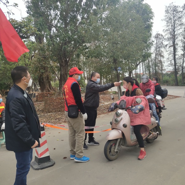 2020年2月8日,11名組員開始參與協(xié)助鎮(zhèn)、新平村、平四村等開展的疫情防控志愿工作。組員們主動(dòng)犧牲寒假假期,沖鋒在鎮(zhèn)、村各個(gè)路口的檢疫工作一線,他們主要在路口檢疫點(diǎn)協(xié)助設(shè)卡測(cè)體溫,路口檢疫工作,過往車輛多,人流量大,任務(wù)重;他們每天按時(shí)到崗,工作6至7個(gè)小時(shí),以實(shí)際行動(dòng)為黨徽增輝、為黨旗添彩。