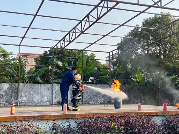 演練結束后,副校長湯斌英對活動進行了總結發言。湯副校長肯定了全校師生的表現,表揚全體師生沉著冷靜、互相合作,一切行動能聽從學校指揮,能按照學校制定的緊急事件疏散方案和路線,本著時間就是生命、紀律就是保障的原則,圓滿完成了此次應急疏散演練活動。接下來,民眾鎮消防中隊的周錦生消防指導員,結合了今天演練的情況,就如何報火警、火災的預防、火場自救及逃生方法、滅火器的使用等消防安全知識進行了講解,并現場指導師生們學習使用滅火器進行滅火。