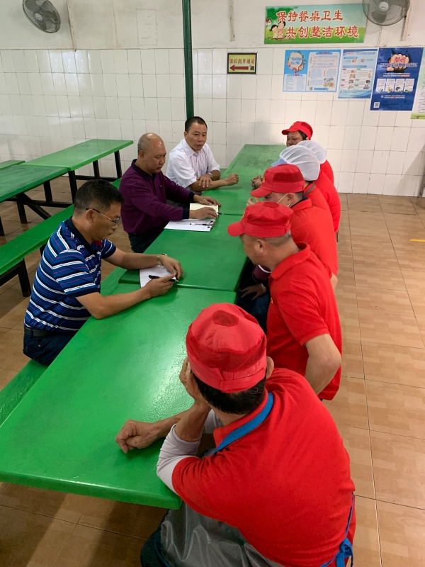 本次檢查主要對用電用水、安全通道、環境衛生、食品衛生、消防消毒等情況進行了全面細致的檢查;隨后重點檢查了食堂廚房,了解當天的菜肴烹煮情況,仔細查看了廚房內的操作情況。最后,集中飯堂所有工作人員和負責人,對檢查結果進行討論,并逐一分析及整改。