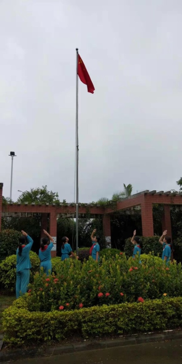 首先由李湘穎老師進(jìn)行國(guó)旗知識(shí)教育,旗面為紅色,長(zhǎng)方形,其長(zhǎng)與高為三與二之比,旗面左上方綴黃色五角星五顆。一星較大,其外接圓直徑為旗高十分之三,居左;四星較小,其外接圓直徑為旗高十分之一,環(huán)拱于大星之右。旗桿套為白色。 旗面的紅色象征革命;旗上的五顆五角星及相互關(guān)系象征中國(guó)共產(chǎn)黨領(lǐng)導(dǎo)下的革命人民大團(tuán)結(jié);星用黃色是為著在紅底上顯出光明,黃色較白色明亮美麗;四顆小五角星各有一尖正對(duì)著大星的中心點(diǎn),表示圍繞著一個(gè)中心而團(tuán)結(jié),在形式上也顯得緊湊美觀。隨后,舉行了莊嚴(yán)的升國(guó)旗儀式。陸銳勛校長(zhǎng)作新學(xué)期致辭。陸校長(zhǎng)代表學(xué)校對(duì)平安假期、安全回校的老師和同學(xué)表示衷心的祝賀。接著,陸校長(zhǎng)向同學(xué)們提出幾點(diǎn)殷切的希望和要求:盡快收心,盡快調(diào)整,把精力集中到學(xué)習(xí)上來;發(fā)奮努力,勤學(xué)多問,努力追趕先進(jìn);遵守校規(guī)校紀(jì),爭(zhēng)做文明學(xué)生;合作互幫,實(shí)現(xiàn)共贏;靜心練字,奠基人生;多讀書,讀好書,提高自身修養(yǎng)。
