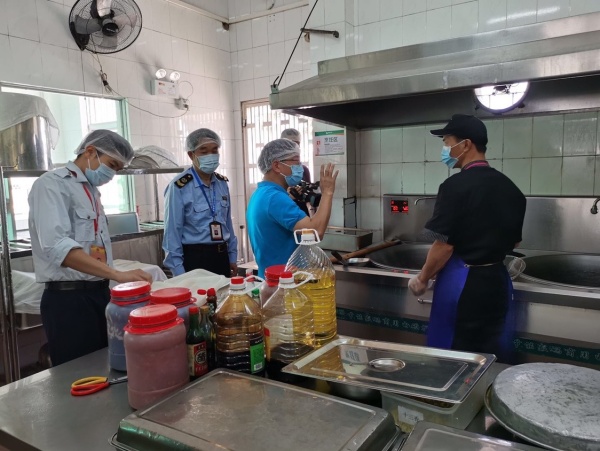 市場(chǎng)監(jiān)督局民眾分局相關(guān)負(fù)責(zé)人對(duì)照條款核查飯?zhí)门_(tái)賬資料,并詢問食堂負(fù)責(zé)人各項(xiàng)工作的落實(shí)情況,并對(duì)學(xué)校食堂工作提出了一些寶貴的建議。