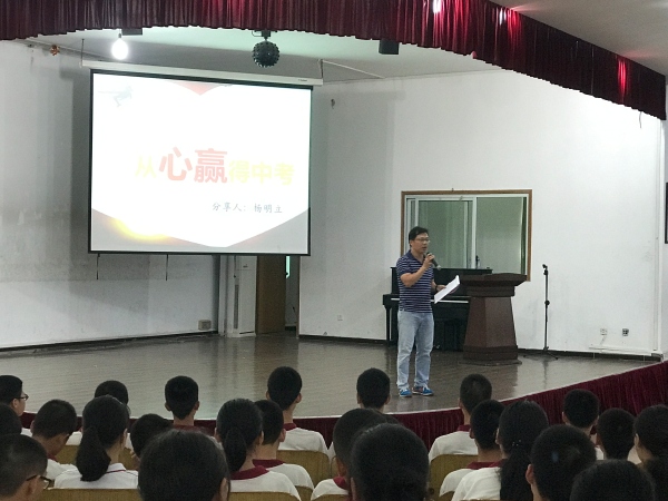 為了幫助同學(xué)們緩解焦慮情緒,以平穩(wěn)的心態(tài)面對(duì)中考,浪網(wǎng)中學(xué)于2019年6月5日,特別邀請(qǐng)中山市家庭教育講師團(tuán)成員、東區(qū)遠(yuǎn)洋學(xué)校團(tuán)委書記楊明立老師為參加中考的全體學(xué)生開展考前心理輔導(dǎo)講座。