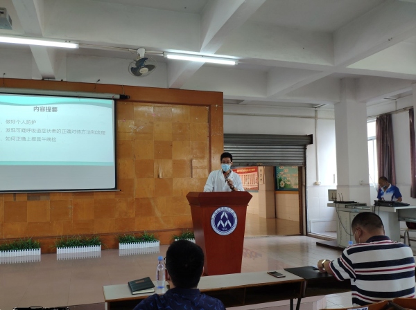 為使七、八年級學(xué)生安全、有序、順利返校復(fù)學(xué),2020年5月10日星期日9時,民眾中學(xué)在學(xué)校階梯室由胡留全校長、何春華副校長、冼健怡校醫(yī)等對七、八年級的教師進(jìn)行線下開學(xué)防疫培訓(xùn)。培訓(xùn)議程有:一、冼健怡校醫(yī)作新冠肺炎防控知識培訓(xùn);二、李咸啟主任說明師生健康卡的相關(guān)事項;三、何春華副校長進(jìn)行返校復(fù)學(xué)校園防控工作培訓(xùn);四、胡留全校長進(jìn)行返校復(fù)學(xué)工作動員。