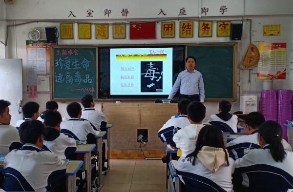 此外,全校各班通過開展主題班會活動分向學生講述了當今國際禁毒的嚴峻形勢及新型合成毒品的類型、危害,與對社會帶來的諸多負面影響以及不可估量的后果。老師們通過生活中的案例告誡全體同學:毒品不僅嚴重摧殘人類健康,助長暴力和犯罪,而且吞噬巨額財富,呼吁全體同學遠離毒品,共同營造健康、和諧的校園氛圍。為了拓寬宣傳教育渠道,豐富宣傳教育形式,除在校園內布置禁毒展板、宣傳橫幅,普及禁毒知識和毒品的危害外,營造禁毒宣傳教育良好氛圍,增強同學們的防范毒品的意識和能力。