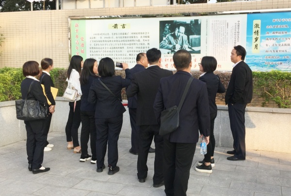 據了解,為紀念毛澤東同志為青年突擊隊寫下按語61周年,繼承發揚原中山縣新平鄉青年突擊隊的“四最“精神,動員廣大青年為建設幸福和美家園貢獻青春力量,2015年12月份,中山市民眾鎮選址沙仔村原平一小學,開始規劃建設中山新平鄉青年突擊隊“四最精神”學習園。該工程于2016年4月投入使用。錦標學校黨員教師參觀了“四最精神”園。 “四最精神”包括紀念廣場、紀念碑以及事跡展示墻。其中紀念碑主碑上刻有毛澤東同志寫按語的雕像,以及“四最精神”具體內容的史料圖片。毛主席在按語中提到“突擊隊表現出青年人的‘四最精神’(最積極、最有生氣、最肯學習、最少保守思想)”,被永載史冊。這些詳實的圖片及文字資料介紹了“四最精神”的由來,展示了新平鄉突擊隊青年艱苦奮斗的歷史。黨員們認真觀看園內張貼的“四最”宣傳欄,他們時而駐足觀望,時而相互探討,對“四最精神“有了更深的了解。在參觀間隙,黃書記向大家介紹了“四最精神”的歷史由來以及紀念意義,并就當前塑造“四最精神”面臨的問題和對塑造“四最精神”問題的原因進行了交流討論,讓每個成員都積極參與其中,參觀結束后大家合影留念。