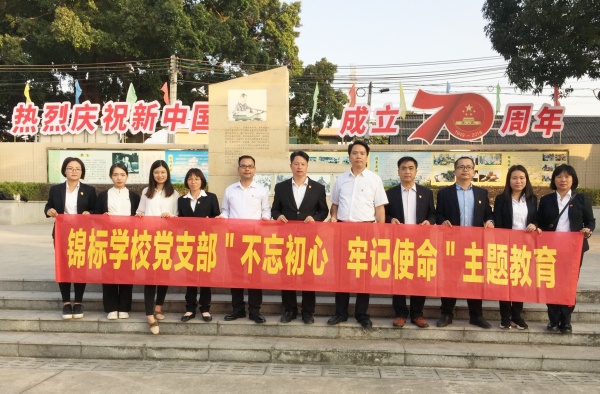 為深入開展“不忘初心,牢記使命”主題教育,2019年11月30日下午,陽光明媚,錦標學校黨支部全體黨員教師在支部書記黃元感同志的帶領下,驅車前往民眾鎮“四最精神”園參觀學習。