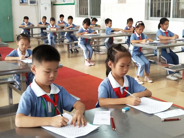 據了解,在教務處蔣業轉主任的精心組織下,全校小學部學生對此次比賽表現出極大的熱情。在班級初賽的基礎上每班選派3位選手參加,共有132名小學生參賽。比賽以教材、古文詩詞等內容為書寫主題。一、二年級用鉛筆,三至六年級用鋼筆。比賽現場,參賽者們個個滿懷激情,用心書寫每一個筆畫、每一個漢字。同學們握筆正確,坐姿端正,表現出良好的書寫習慣,所寫作品筆畫流暢,橫平豎直,結構勻稱,整體美觀,在短短的二十分鐘內現場完成自己的作品。評委老師們從寫字姿勢、書寫筆畫筆順和卷面三方面情況綜合評估學生的寫字水平。在公平、公正的評分之后,各學段分別評出了一、二、三等獎,并挑選出優秀作品在校園內進行展覽。