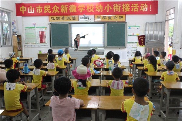 參觀小學是幼兒園幼小銜接教育活動中的一項重要活動。對幼兒園的孩子而言,小學是一個陌生而又富有誘惑力的地方。民眾新徽學校自2018年開始開展幼小銜接活動,邀請周邊一些幼兒園大班的小朋友到校進行參觀校園,感受小學氛圍。通過參觀小學可以減少幼兒對小學的陌生感、神秘感,激發幼兒對小學生活及學習的憧憬與向往,為適應小學生活做好充分的心理準備。