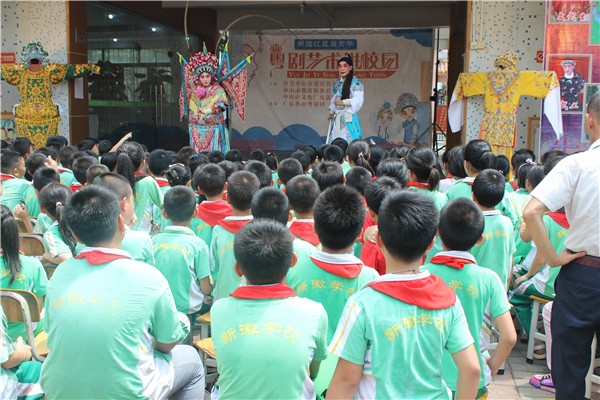 為了貫徹落實黨的十九大精神,大力弘揚傳統戲曲文化,進一步加強對傳統戲曲文化的保護、傳承和發展,香山粵劇團將粵劇藝術送進校園,開展對學生進行戲曲文化教育活動,讓學生感受嶺南戲曲文化的藝術魅力,同時加深對粵劇的認識,開闊學生視野,陶冶情操,2019年5月16日上午,廣東香山粵劇團的藝術家們走進了中山市民眾新徽學校,為師生們帶來一場精彩紛呈的視覺盛宴。