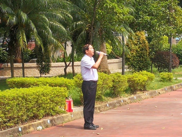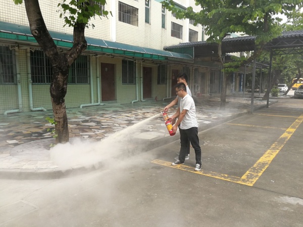 接著,葉寶山主任深入淺出地講述了消防安全的重要性,就防火、滅火、逃生、自救四個方面進行了重點闡述,并介紹了火災的形成過程、火場中易出現的延誤逃生時機的誤區、自救逃生的方法以及滅火器的種類、操作使用方法等一系列消防安全知識。隨后,葉寶山主任現場指導學生如何使用滅火器。并讓部分學生、班主任親自體驗,讓全體師生切實掌握滅火方法,防患未然。