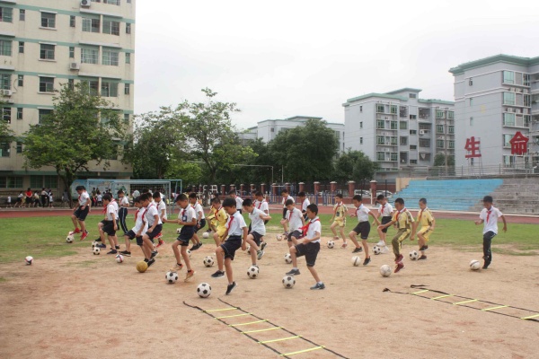 八點(diǎn)半左右,家長(zhǎng)們陸續(xù)到校,他們紛紛在網(wǎng)球場(chǎng)前面的簽名墻上簽名并拍照留念,這面簽滿了家長(zhǎng)和孩子名字的墻壁大大地增加了家長(zhǎng)對(duì)自己身份的認(rèn)同感,拉近了學(xué)校、學(xué)生和家長(zhǎng)三方的距離。九點(diǎn)到九點(diǎn)二十分,是孩子們大課間活動(dòng)時(shí)間,他們以班級(jí)為單位安靜有序地到達(dá)指定位置,隨著體育老師一聲令下,便立即投入到各自的活動(dòng)項(xiàng)目之中。 小學(xué)的每個(gè)班級(jí)都有自己的特色訓(xùn)練項(xiàng)目,或籃球,或足球,或跳繩,形式多樣,內(nèi)容豐富,孩子們?cè)诖笳n間活動(dòng)中不僅鍛煉了身體,也找到了學(xué)習(xí)之外的樂趣。七八年級(jí)的同學(xué)則是以班級(jí)為單位的跑步活動(dòng),他們整齊劃一的步伐、隊(duì)列和嘹亮的口號(hào)聲引得旁觀的家長(zhǎng)贊嘆不已,紛紛掏出手機(jī)記錄下這一個(gè)個(gè)精彩的瞬間。