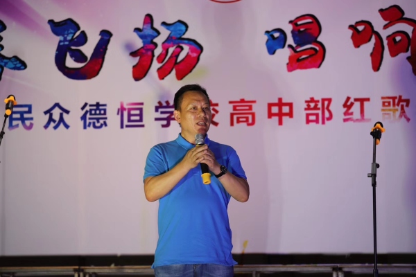 比賽結束后,高中部宋慶忠校長對此次活動做了點評,宋校長首先高度贊揚同學的精神面貌和激情的表演,指出音樂是落實美育的主要途徑,積極向上的音樂作品可以鼓舞斗志,激勵人上進,革命歌曲是一筆寶貴的財富,同時還教導同學們,要有一顆愛國的心,傳承革命精神 ,要樹立遠大的目標。對于本次科技藝術節,宋校長也號召全體同學積極參加,在舞臺上更好的展示自己。賽出我們德恒學子風采,展現我們德恒學校的科技藝術特色!用行動點燃科技文化的熊熊火炬,用滿腔的熱情,詮釋了青年學子的愛國情懷。