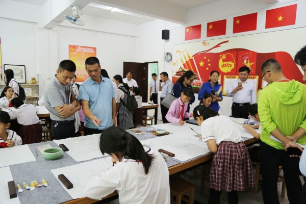 學校行政團隊的帶領下首先參觀了校園、餐廳、宿舍。美麗的校園,整潔的宿舍內務讓大家眼前一亮。隨后一同觀摩了學生的陽光大課間活動,大家對德恒學校豐富多彩而井然有序的課間活動給予了充分的肯定。接著大家分組進班觀摩了各學科的展示課,并深入到各個功能室了解手工、國畫、兒童舞蹈、合唱、古箏等第二課堂的開展情況。隨后,與會人員又翻閱了德恒學校各年級、各學科的教案、學生作業等,更進一步了解了德恒教學常規管理的細致和認真。