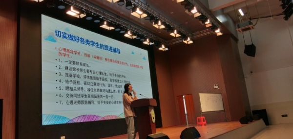 此次培訓(xùn)活動(dòng)由德育處謝錦霞主任主持,心理老師林建樹主任作題為“關(guān)注學(xué)生,用愛守護(hù)”的主題講座。林主任先從學(xué)生返校復(fù)學(xué)可能面臨的問題講起,各位班主任要切實(shí)做好各類學(xué)生的跟進(jìn)輔導(dǎo),重點(diǎn)關(guān)注心理高危學(xué)生、高風(fēng)險(xiǎn)學(xué)生,并準(zhǔn)備好對(duì)策,及時(shí)覺察和關(guān)注,給予疏導(dǎo),根據(jù)學(xué)生的實(shí)際情況調(diào)整教學(xué);對(duì)一般關(guān)注的學(xué)生,班主任、科任、本班學(xué)生是主力幫助,心理老師協(xié)助輔導(dǎo)。各班主任還要聚焦問題,精準(zhǔn)排雷,做到統(tǒng)籌推進(jìn),分類指導(dǎo)。林主任給了以下預(yù)防策略和建議:面對(duì)整體要開展返校復(fù)學(xué)學(xué)習(xí)目標(biāo)制定、時(shí)間管理、手機(jī)管理主題班會(huì)課;面對(duì)個(gè)體要分類談心與輔導(dǎo);面對(duì)學(xué)生面臨的同伴交往問題要營(yíng)造溫馨和諧的班級(jí)氛圍,建立聯(lián)接、同伴互助、構(gòu)建希望、共同成長(zhǎng);面對(duì)師生交往問題要理解包容和關(guān)愛自己的同時(shí),理解包容和關(guān)愛學(xué)生等。最后,林老師還提出了有效溝通三部曲的策略,建議師生擺出事實(shí)、說出感受、提出希望,要有感恩教育的指導(dǎo)。活動(dòng)最后環(huán)節(jié)還在主持人的指引下開展現(xiàn)場(chǎng)答疑,林主任就學(xué)生心理健康問題為現(xiàn)場(chǎng)的班主任解答。