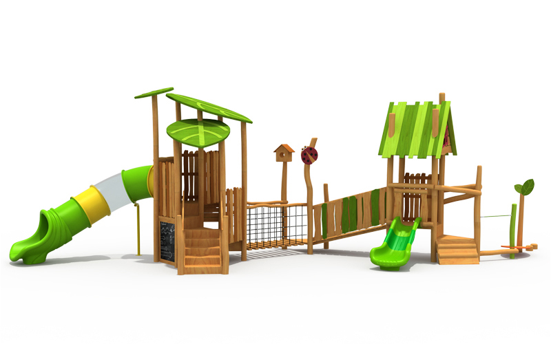 兒童戶外木制拓展組合滑梯是兒童大型游樂設施;它集健身、益智、娛樂為一體,根據小朋友的興趣及愛好精心設計各種不同樣式,是一座新型綜合性很強的兒童樂園。是針對兒童喜歡鉆、爬、滑、等特點設計;整套滑梯色彩鮮艷、娛樂性強、功能齊全、質量可靠。該產品適用于各種場合(公園、小區、游樂場、商場超市、幼兒園、等)?;萁Y構安全、耐用、設計巧妙、色彩和諧;整套設備各個部件的巧妙結合;可給孩子帶來安全、歡樂、新奇、活潑的感受。整套滑梯包括門、橋、滑筒、屋頂、樓梯、平臺、立柱、爬梯、滑梯、攀管、和繩網;滑梯全部用扣件連接;適合小朋友互動游戲玩耍。