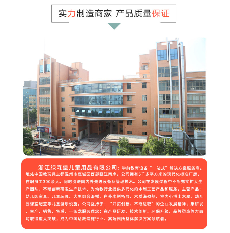 浙江綠森堡兒童用品有限公司:學前教育設備“一站式”解決方案服務商!主營產品:幼兒園家具、戶外木質拓展、兒童組合滑梯、攀爬網、教具柜、玩具柜、等兒童課堂教學游樂設備。綠森堡-以綠色-自然-環保為出發點;為兒童的成長健康創建安全放心堡壘! 綠森堡 - 竭誠為您服務 - 歡迎您的光臨!