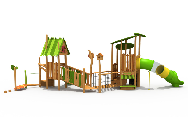 木制屋頂、滑梯、平臺、立柱、爬梯、鉆洞、欄桿、圍欄,網橋、網洞等....