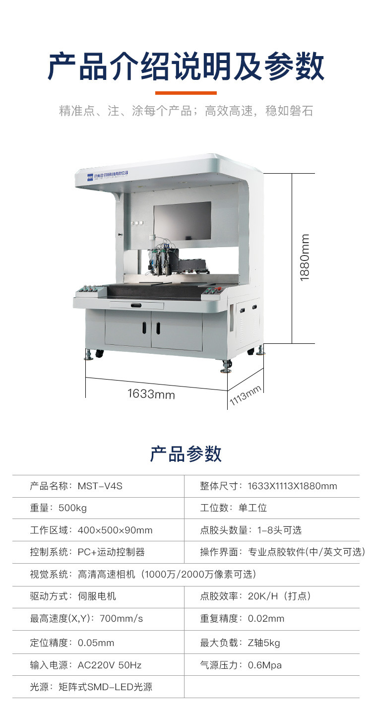 4. 可并入流水線,膠量靈活可調,點膠時間輕觸屏數字式調節,采用環形點膠及點狀點 膠可選模式,點膠均勻,效率遠高于手動點膠機。